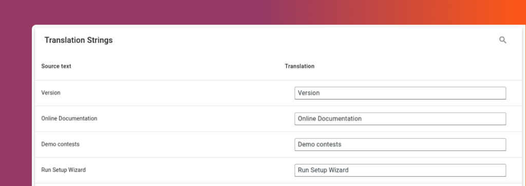 Select the languages for the translations under the Contest => Translations. You can click on the Select language to edit the translation strings available in the plugin.